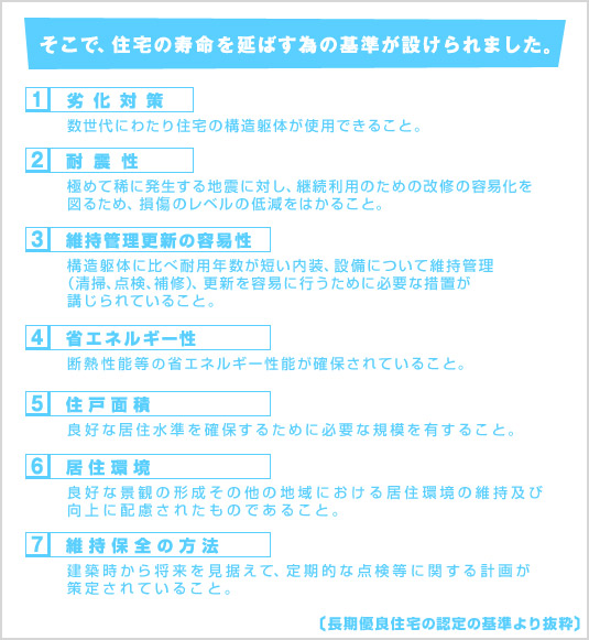 そこで、住宅の寿命を延ばす為の基準を設けられました。
